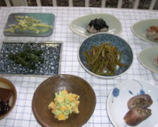 ずんだがき(茹でた枝豆をすりつぶし、角切りにした柿とあえたもの。色合いがきれいです。)