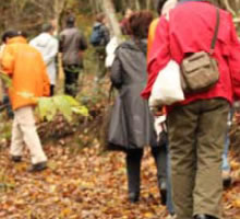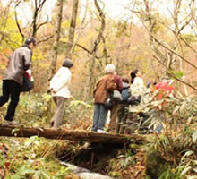 熱心に色々教えてくださる森林セラピーガイドの方々 |