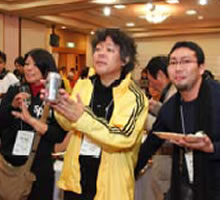 アサヒビール(株)よりビールとお茶、辻酒造より御前酒、呼びかけ人の藤原誠太さんからスズメ蜂ウォーター、過去の開催地から、ワインやどぶろく、日本酒等沢山の差し入れをいただきました。ありがとうございます。 |