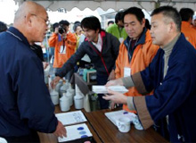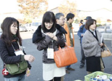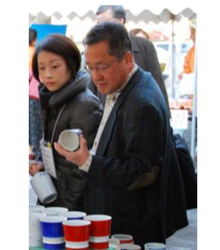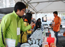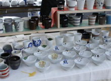 前日磁器の製造工程を見学しただけに、青空市で波佐見焼を見る人の目は興味津々でした
