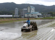 昔の田植えは、「結」でやりました。今日はこっちの田圃、明日はあっちの田圃と1か月近く回りました。共同防除をやっているところです。害虫を退治する農薬をまいています。 |