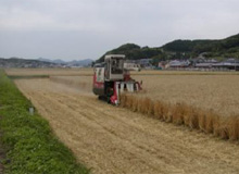 稲刈りの様子です。刈った後は、天日干しです。半月くらいかけて干しました。天日に干したお米は美味しいです。 |