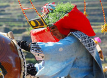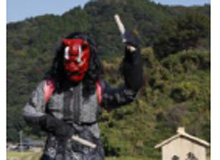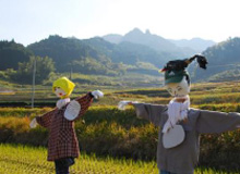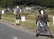 鬼木棚田の個性豊かな、かかし達がお出迎えです |