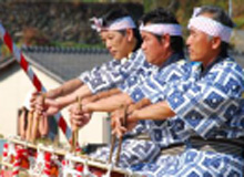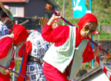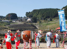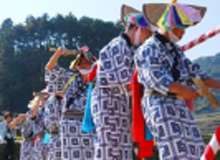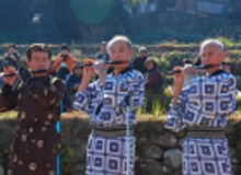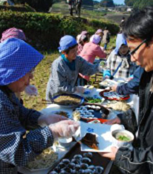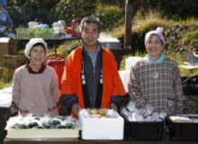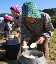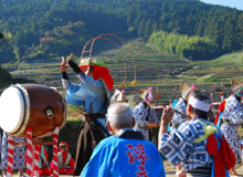 澄み切った青空と浮立の音色を聴きながら棚田で食べるお料理は
