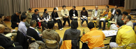 真剣に、しかし笑いも交えながら、和やかな雰囲気で語り合います |