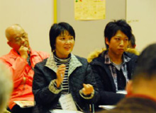 参加者の話をじっくりと聞くブラウンさん |