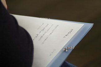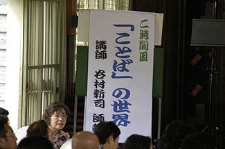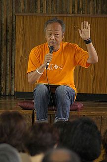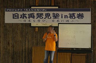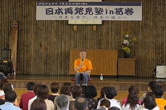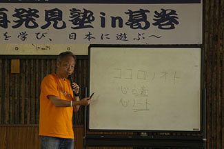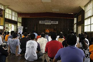 <谷村師範による授業 旧江刈川分校講堂にて>